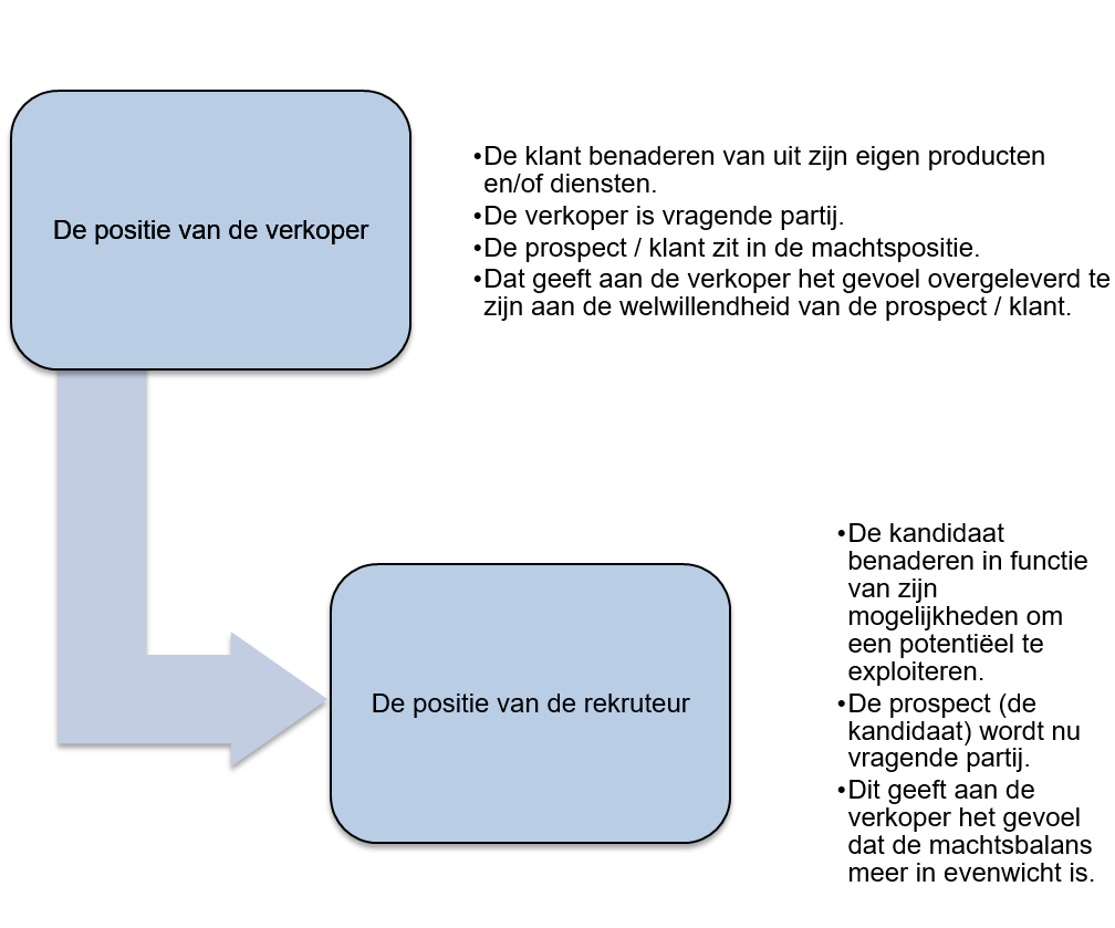De mentale positie van de “rekruteur” is dus fundamenteel verschillend van de mentale positie van de “verkoper”. Uit training en coaching op de baan blijkt dat verkopers het moeilijk hebben deze mentale stap te zetten. Daarom is coaching op dit vlak zo belangrijk. De praktijk bewijst dat verkopers die deze stap ook echt zetten, vrij snel een veel beter netwerk uitbouwen.